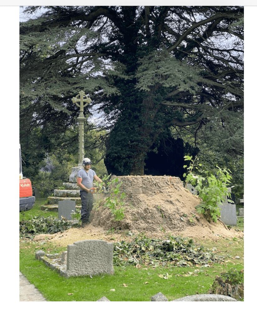 All this great tree taken down and removed without any damage to a single tomb stone and hardly a mark in the grass and or sawdust to see afterwards.